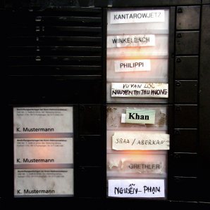 >Apartment block bell pushes next to our Turkish butcher in the Heidelbergerfassgasse.