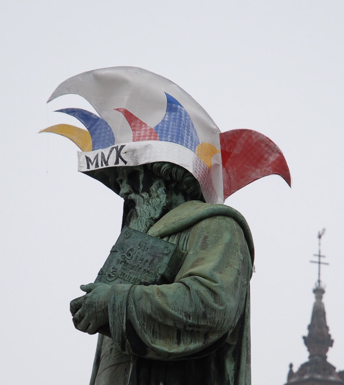 Appears that folk though he wasn’t getting in the mood for the Rosenmontag carnival procession and gifted him a hat from one of the carnival clubs.