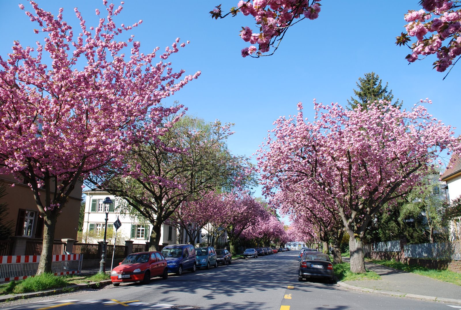 A road in the Oberstadt (Upper Town – you get the idea – a bit flash…) that’s lined with flowering cherries forming a solid canopy of tender pink… Oops, classic case of being swamped by the effusiveness of their descriptive skills.