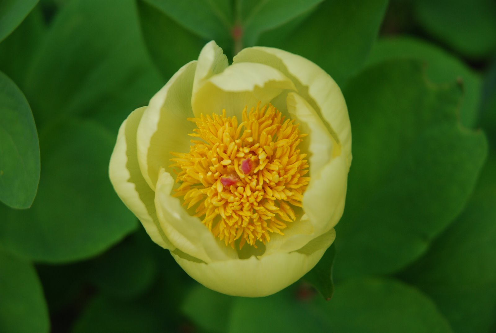 >offeWe have 3 tree peonies in the garden – a double purple, this single yellow and one of unknown form and colour.