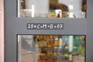 The “Sternsinger” – Star Singers, after the star that the Magi followed – are kids from the local parish who go from house to house by invitation and sing, recite a poem or say a prayer and then mark the lintel or the door with C+M+B and the year with consecrated chalk.