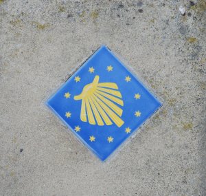 This is a marker on the St James’ Way, the route of an ancient pilgrimage that stretches 2400km to Santiago de Compostela in northern Spain.