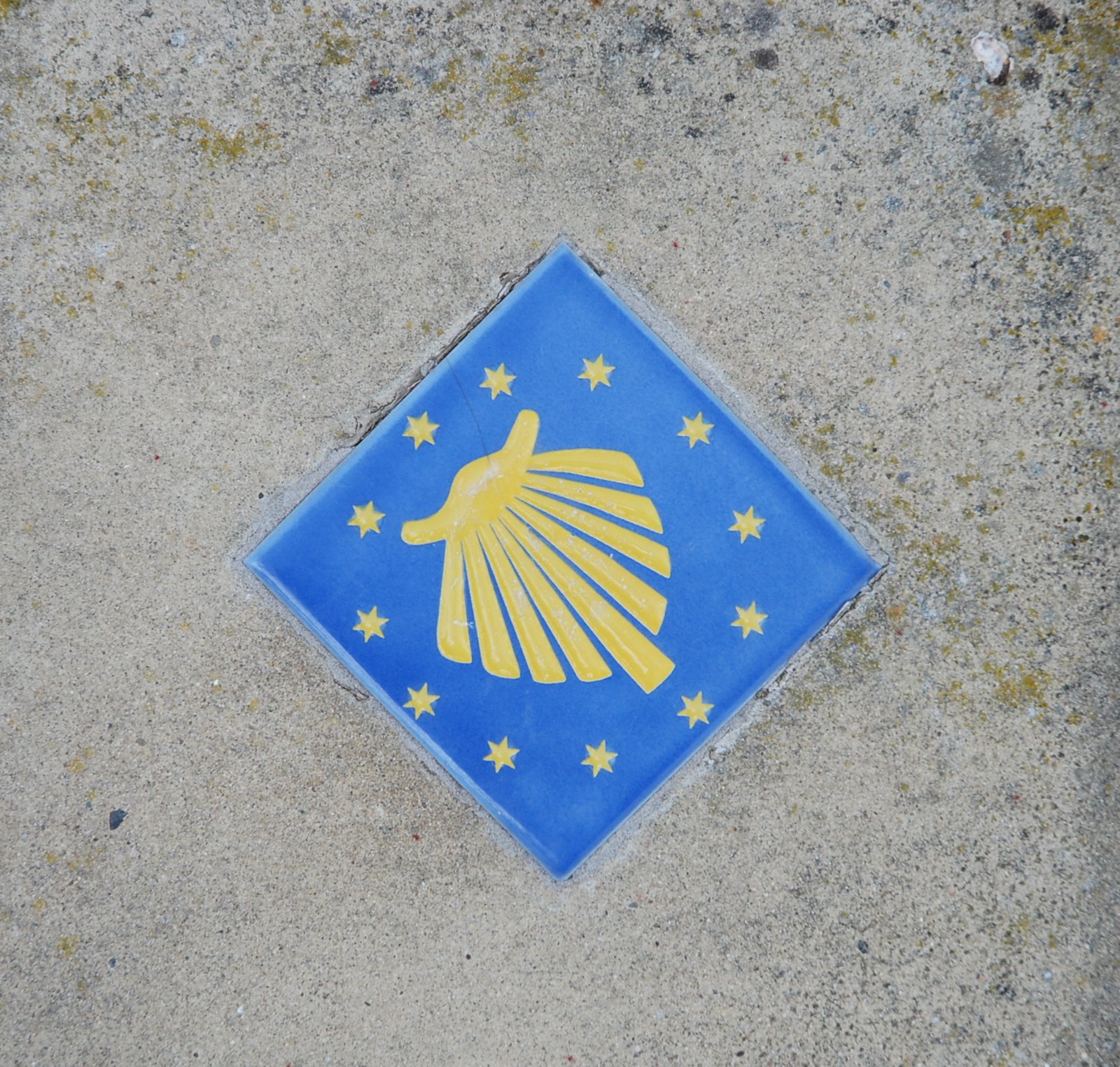 This is a marker on the St James’ Way, the route of an ancient pilgrimage that stretches 2400km to Santiago de Compostela in northern Spain.