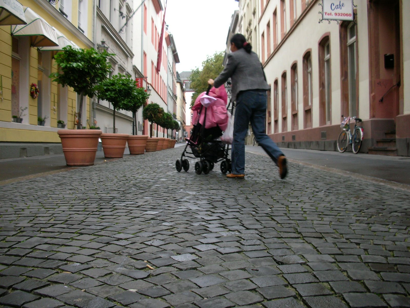 1. >and pity that poor kid in the buggy being jogged along over the cobbles.They may look nice but driving over them in a wheelchair is no fun!