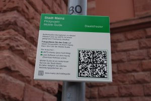 You download a minute chunk of software onto your mobile, take a photo of the Semacode matrix on the information boards scattered around Mainz and watch an audio-visual presentation on your phone, featuring Gundula Gause, national news reader and local girl.