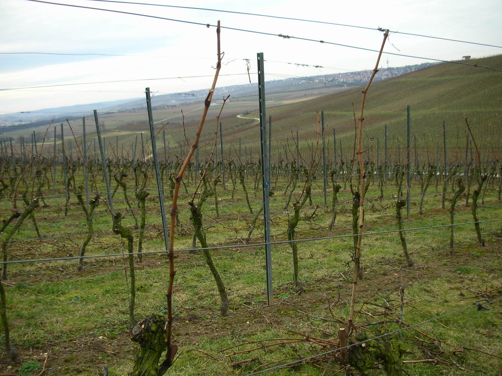 Prune the vines back to one cane and trim to length, otherwise you’ll have billions of minute grapes, providing no juice at all.