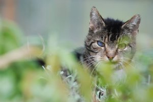 >a cat with 2 color of eyes is rare. i’m not sure i’ve ever seen one.love your photo, especially the grass as the foreground 🙂