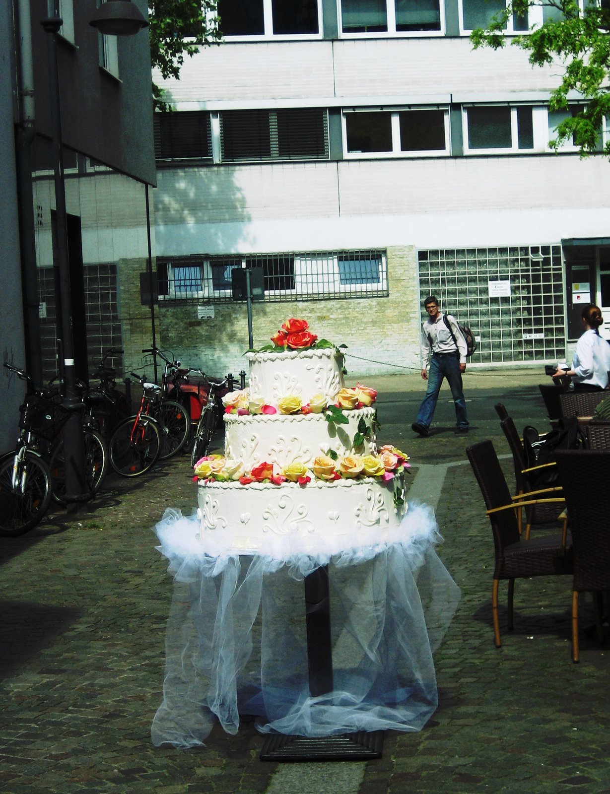 >There it was – larger than life – a wedding cake, in the middle of the laneway! The mind boggles.