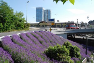 These manicured rows of lavender are squeezed in at the back of the Hauptbahnhof (Main Station) in Mainz and between a jumble of flyovers and access roads.