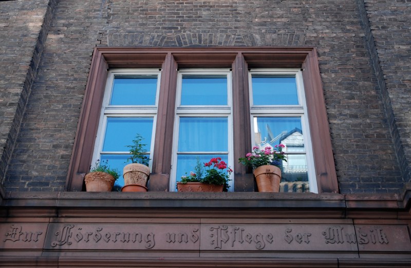 The house on the corner of Am Schottenhof and the Gaustrasse was endowed in 1857 to a foundation “For the advancement and cultivation of music” by Franz Philip Schott and his wife Betty, nee von Braunrasch (all of which is embossed as a continuation of the text in the picture)