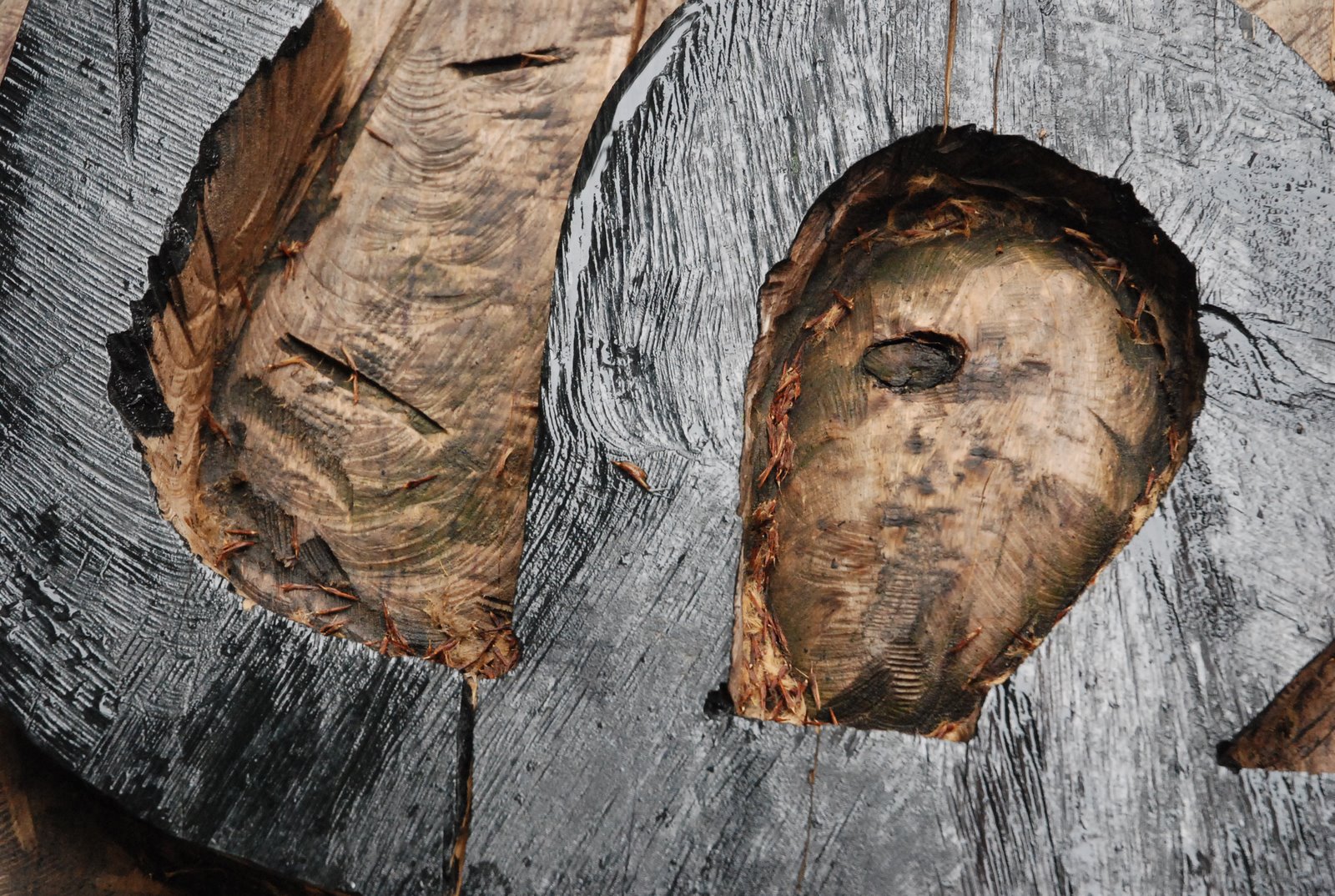 BIG chunks of wood with individual letters carved out in mirror typeface, with the printing surface stained black to simulate the ink.
