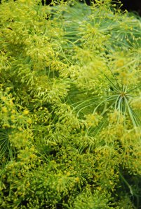 Bunches of dill flowers on the market.