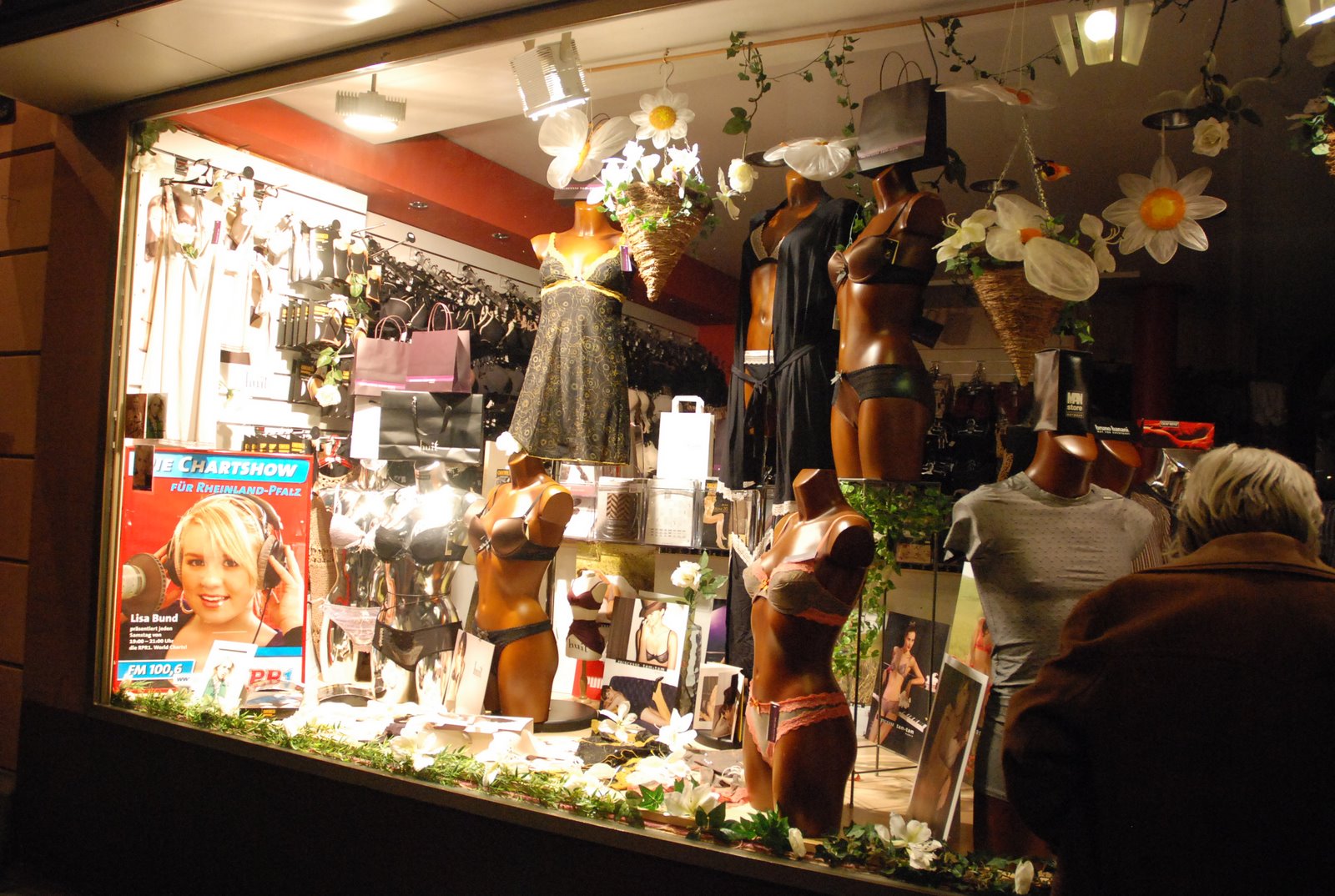Free advertising in Mum’s undergear and sock shop window in the Augustinerstrasse.