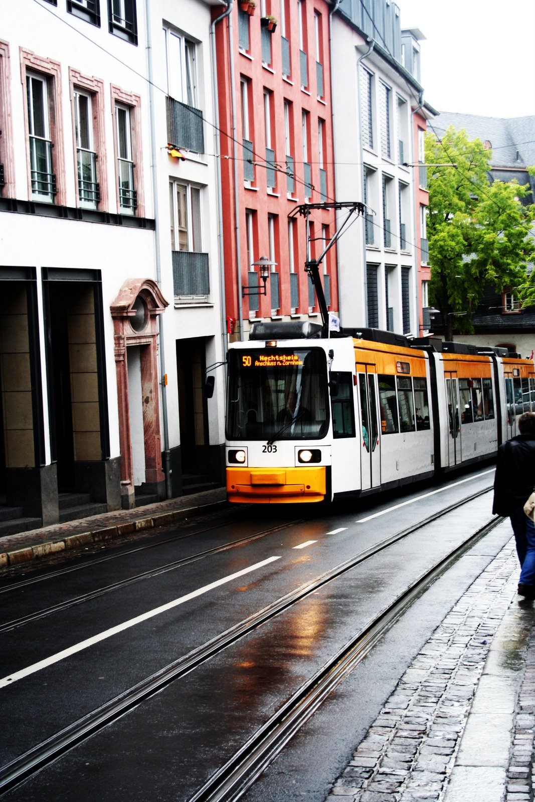 >Mainz has a pretty good public transport system – mostly buses, but also 3 tram lines as well. Having lived in Melbourne for the last 6 or so years, I must admit to being a tram fan. This is the Number 50 that runs between Hectsheim and Finthen.