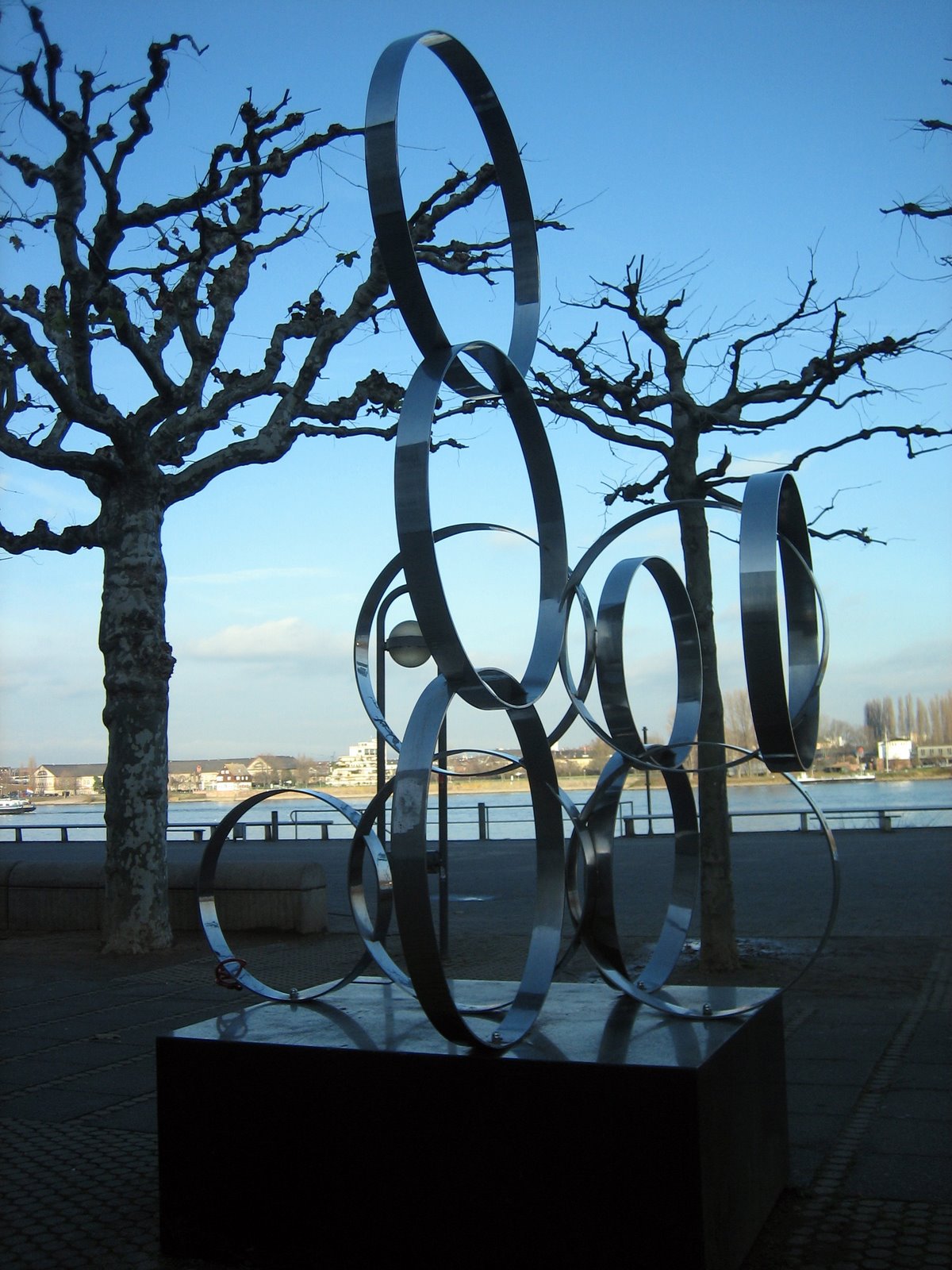 Public art on the Rhein – this sculpture is called “Zirkulationen im Raum II” by Vojin Bakic.