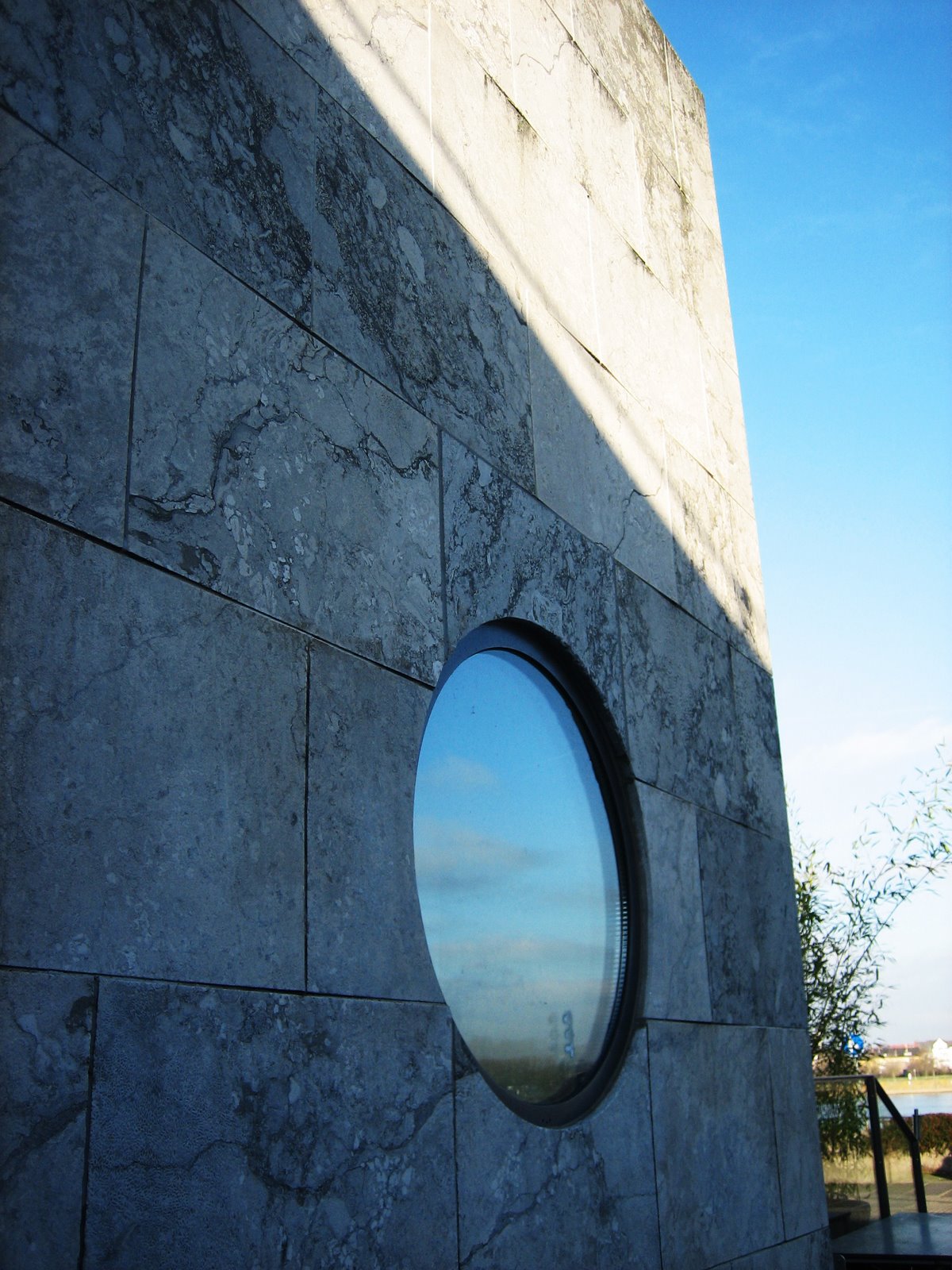 This porthole window belongs to the cafe attached to the Rhinegoldhalle, a performance space and exhibition centre.