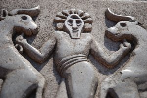 Another in the series of carvings on the not so moveable type in front of the Gutenberg museum