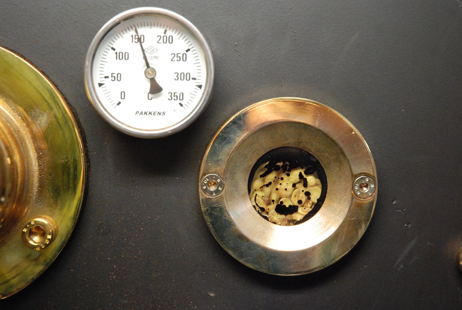 And then they crank the roaster up to 150ºC (work out what it is in cubits and stuff yourselves…) and pay v e r y c l o s e a t t e n t i o n to what’s happening to the beans in the porthole of the right starboard side.