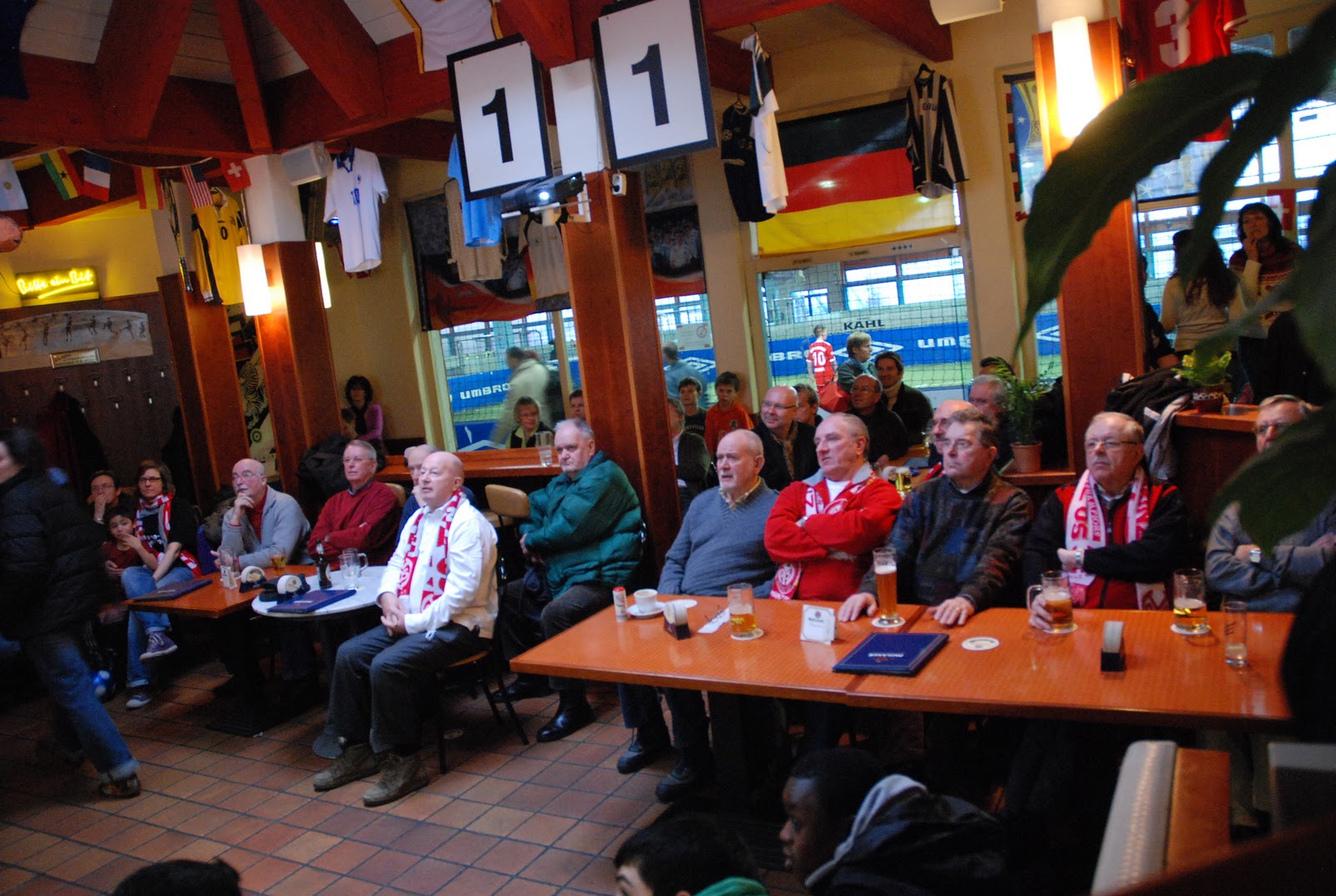 So if watching it live in the stadium’s out of the question, watching it live on a big screen in the pub attached to SoccerWorld, an indoor football centre, is the next best thing.