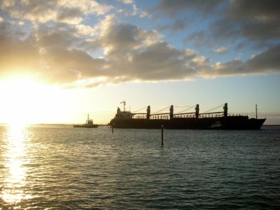 So why would a vessel loaded to the gunwales with logs be nudged into Nelson harbour by a tug while we were having fish and chips (and a discreet bottle of Sauvignon Blanc) with Meg and Ben yesterday evening?
