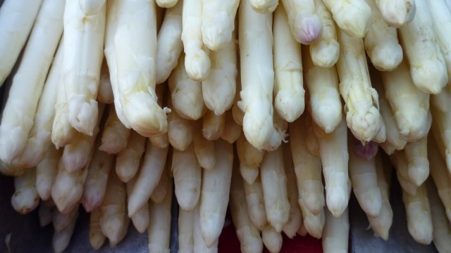 This isn’t the VERY first asparagus of the season (Chilean asparagus – with a carbon footprint this size of Shanghai – has been sighted plus the usual Italian/Spanish invasion) but it’s claimed to be