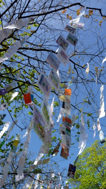They reminded me so much of the strings of tied prayer notes that I saw in Kyoto years ago.