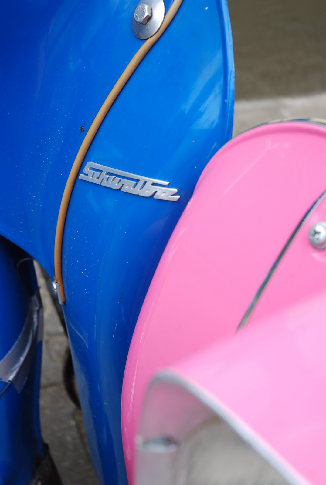 >A rare pleasure to meet you today good sir…Now, I may be confused by all the wine which was consumed, and by the visions of the wine queen a few posts down, and by this pinkest of pinkly painted scooters next to that rich royal blue, but if this is a daily photo blog, how can it be that in March there were 32 posts, and in February a total of 30 ? Or were there some intruder posts which slipped in through rips in the space-time continuum ?Hope your return was smooth sailing this evening…