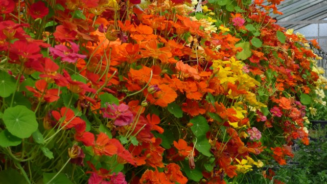 Might look like the Dutch fan block at the World Cup in South Africa, but on closer inspection, it turns out to be a mass planting of Tropaeolum or Nasturtium (literally “nose-twister” or “nose-tweaker”) at Stein’s nursery in Gonsenheim.