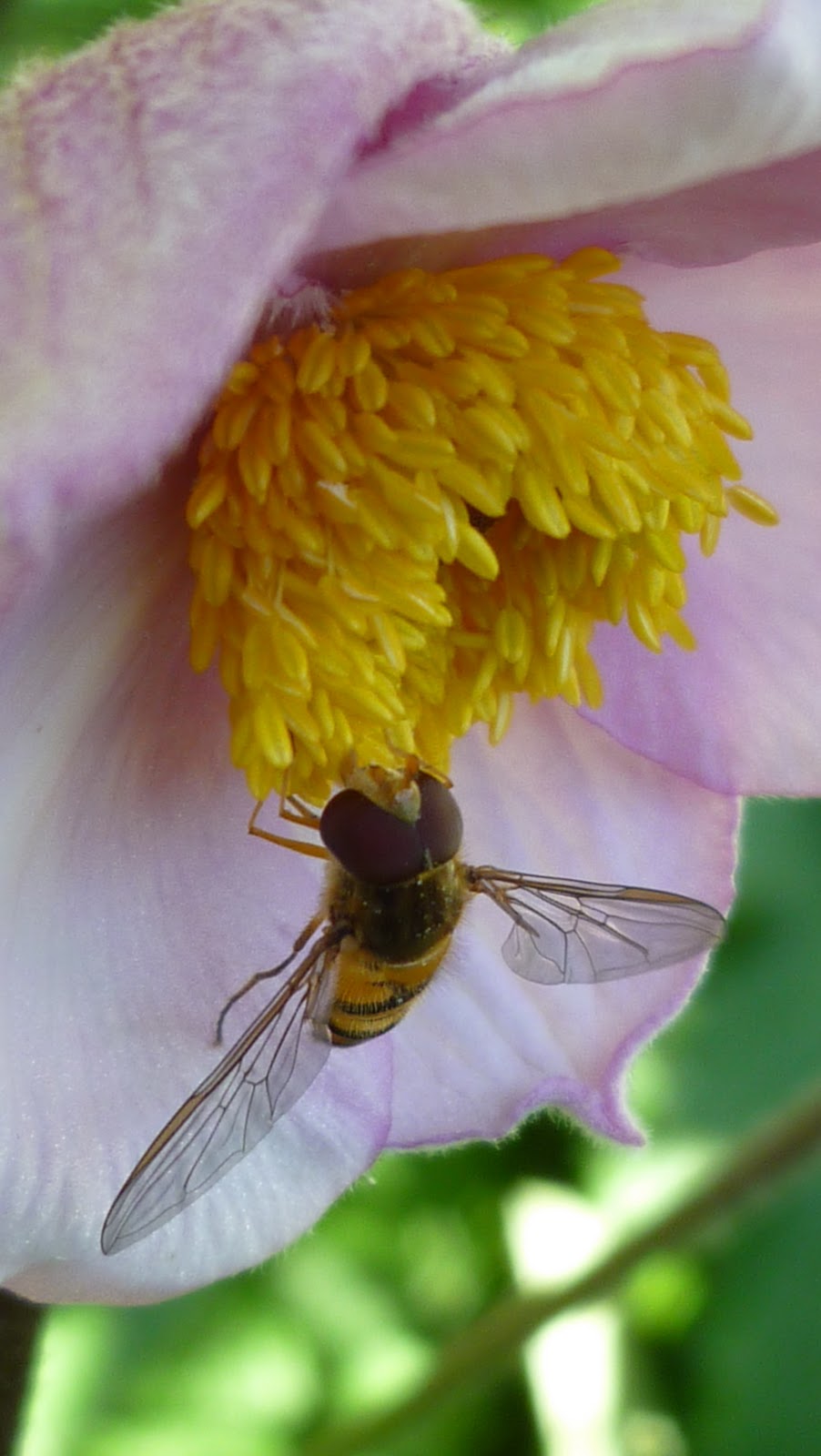 Here’s Anemone Hupehensis var Japonica and an unidentified buzzy thing.