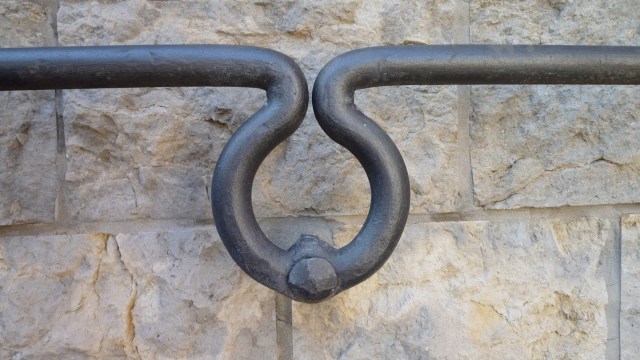 Classic wrought-iron handrail leading up the steps from the Eisgrub brewery to the (free…I like “free”) on-street parking in the Eisgrubweg.