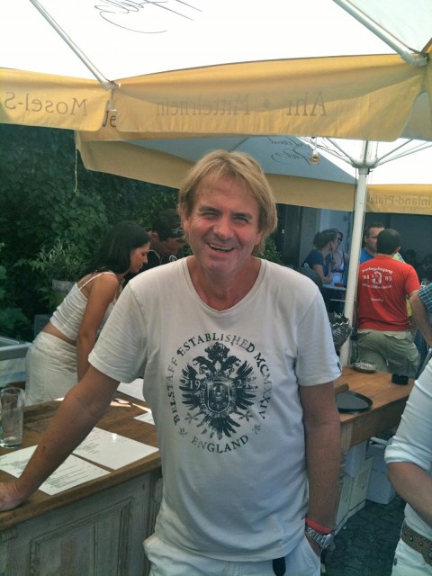 And he puts on his Annual Legendary Summer Festival, with food from Thomas at Schloss Sörgenloch, wine from Klaus and Isabel Gres (that’s her, showing a fair bit of bare midriff in the background, music by Becker ohne Stecker (The drummer told me “We only tolerate his wearing socks and sandals, because he’s so bloody good…”