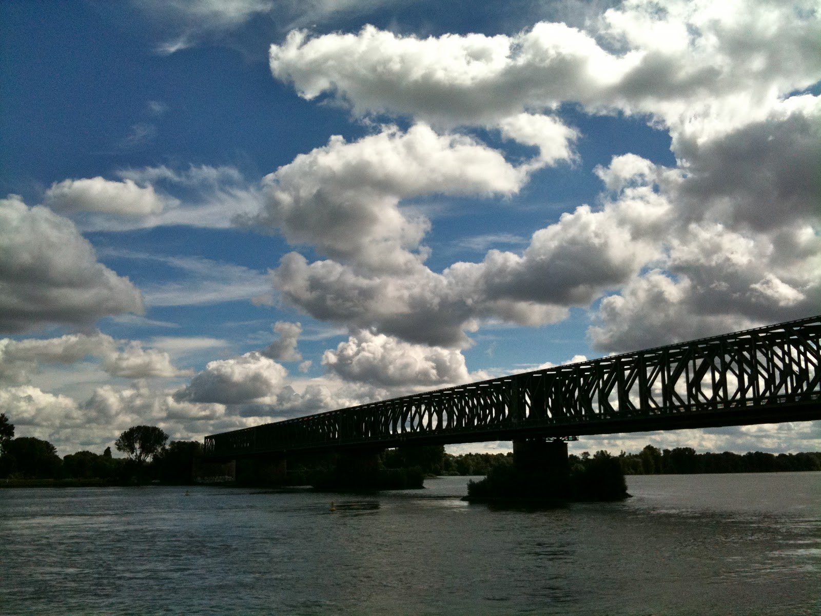 1. >Never mind the trains – with a little luck bikers can even outrun an ICE standing dead on the bridge and waiting to get clearance for the station. It’s the speed freaks you have to share the bridge with. Once you slow down to take a closer look at those beautiful cumuli they will give you a furios tintinnabulation with their bike bell. The highways (Schierstein Bridge, Weisenau Bridge)are even more compelling – eyeball to eyeball with the oncoming traffic.