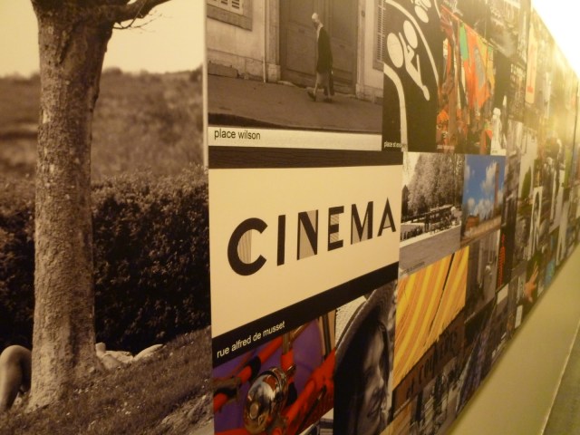 Massive collage of images from Dijon, covering an entire wall.