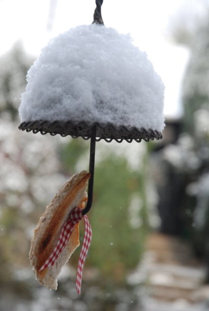 I get talked out of half a sesame bagel at breakfast, Ms jb spends GOOD MONEY on a totally unnecessary tin umbrella thingie, even ties a RIBBON around the handle and the bloody birds stay away in their DROVES.