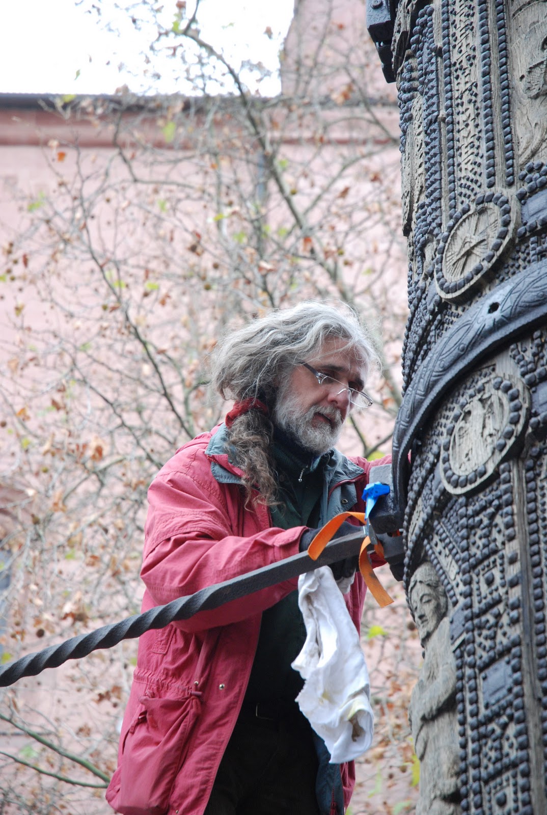 I asked him what stage of the restoration he was at, so he told me in detail (coating the metal stays with anti-corrosive stuff), invited me inside the fence for a closer look and showed me all sorts of interesting plaques and their history.