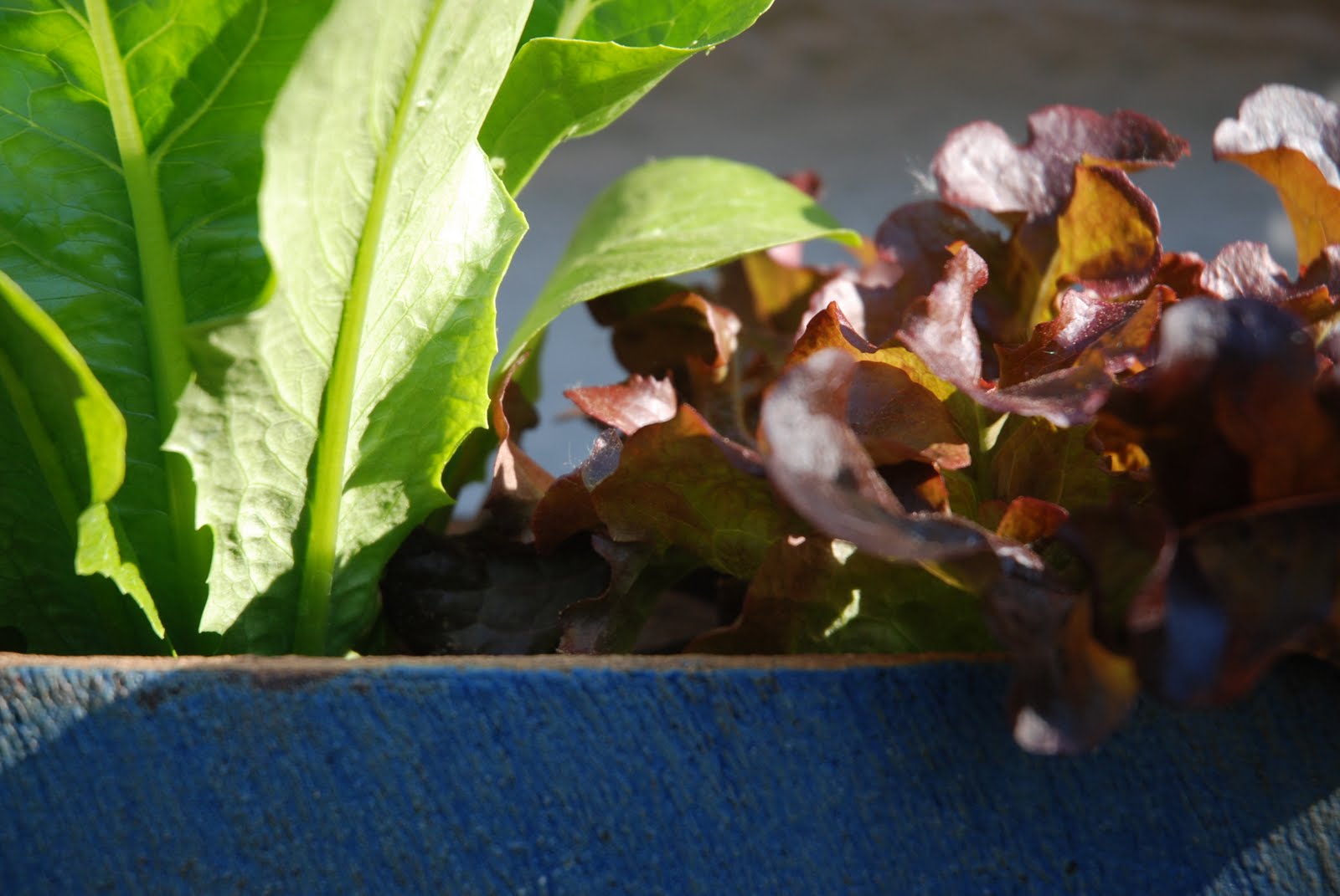 We’ve got a mixture of Romana, oakleaf and Lollo Rosso and Bianco. Throw in some sorrel leaves, some ruby chard and whatever else you’ve got that’s leafy and edible and away you just do go.