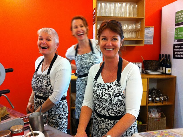 Meet (from right to left) Michelle Torrens and Tersha Coppell, the co-owners of Lydia’s Café in Richmond and Cornelia Ruff, baristess extraordinaire and hailing from our very own Keschm (Kirschheimbolanden), a mere HSAAJ from Mainz.