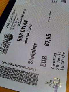 Off to see His Bobness at his open air concert in Mainz last Saturday.
