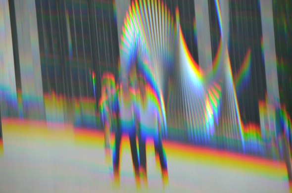 A view of the Rathaus and Andreu Alfaro’s “Lebenskraft – Vital Energy” sculpture through the rotatable prism at the excellent “Spektrale 2011” exhibition.