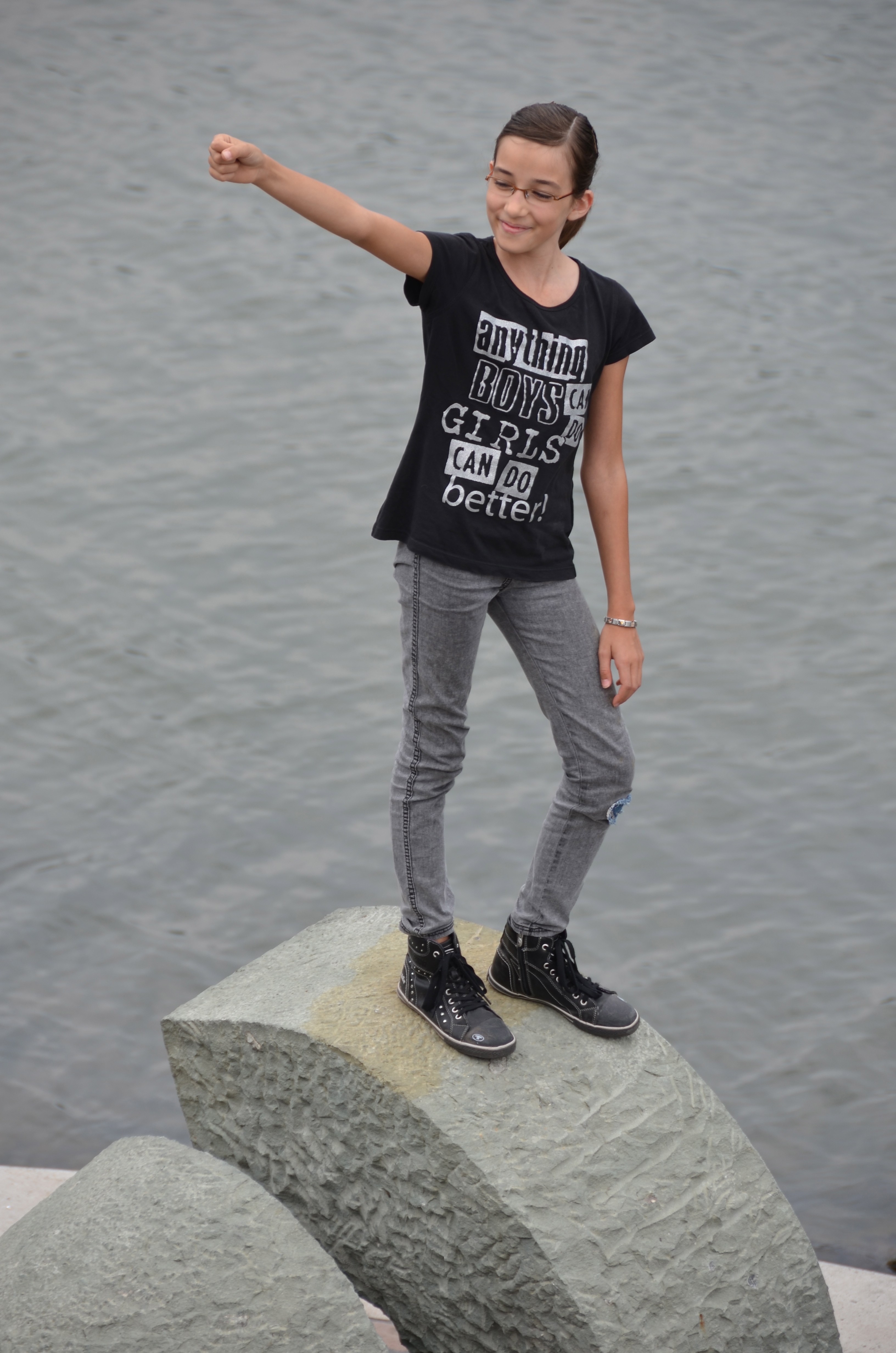 You go, girl! I’ll have to try to find that t-shirt for my 9-yr-old granddaughter, who is a “bloody feminist in the making,” and she can open her own doors, thank you very much! Admit it, jb, you think this kid is pretty cute, and smart, too!!
