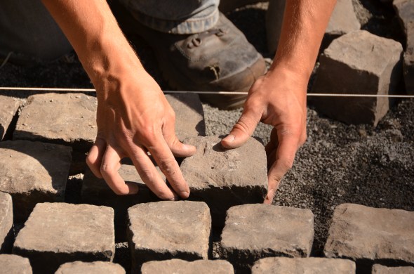 Matthias in Portugal, specially Lisbon, the cobble stones are still laied down the old fashion way. The artisans do it all by hand inclusive the shaping of the stones. It´s a really hard work job, specially if you have to do it in the peak of the summer.