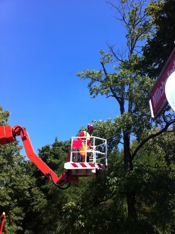 Serious arboreal trimming taking place in Bretzenheim’s Milky Way (Milchpfad)
