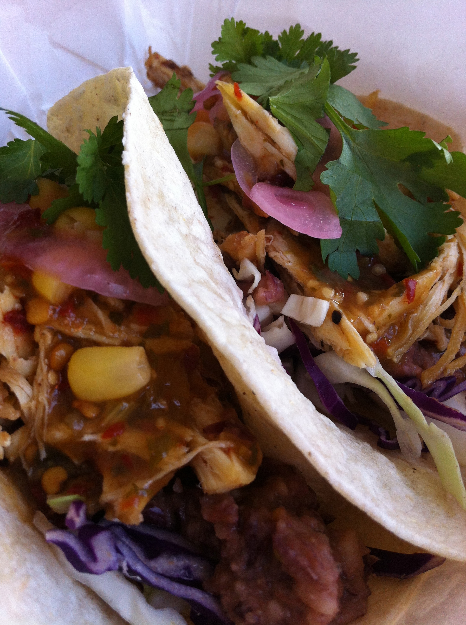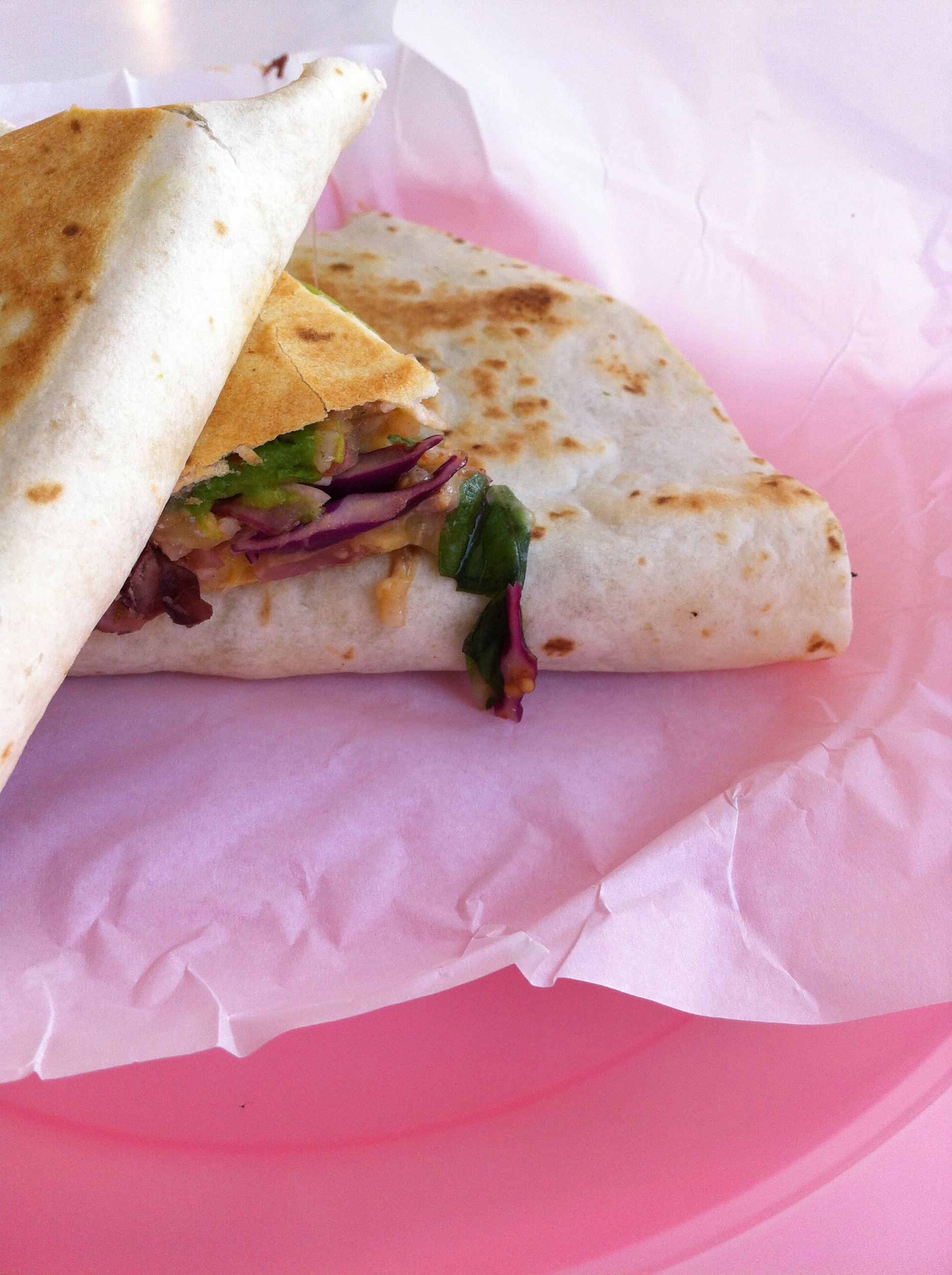 Tacos, burrittos and quesadillas with chicken/pork/beef/fish/vegetable.