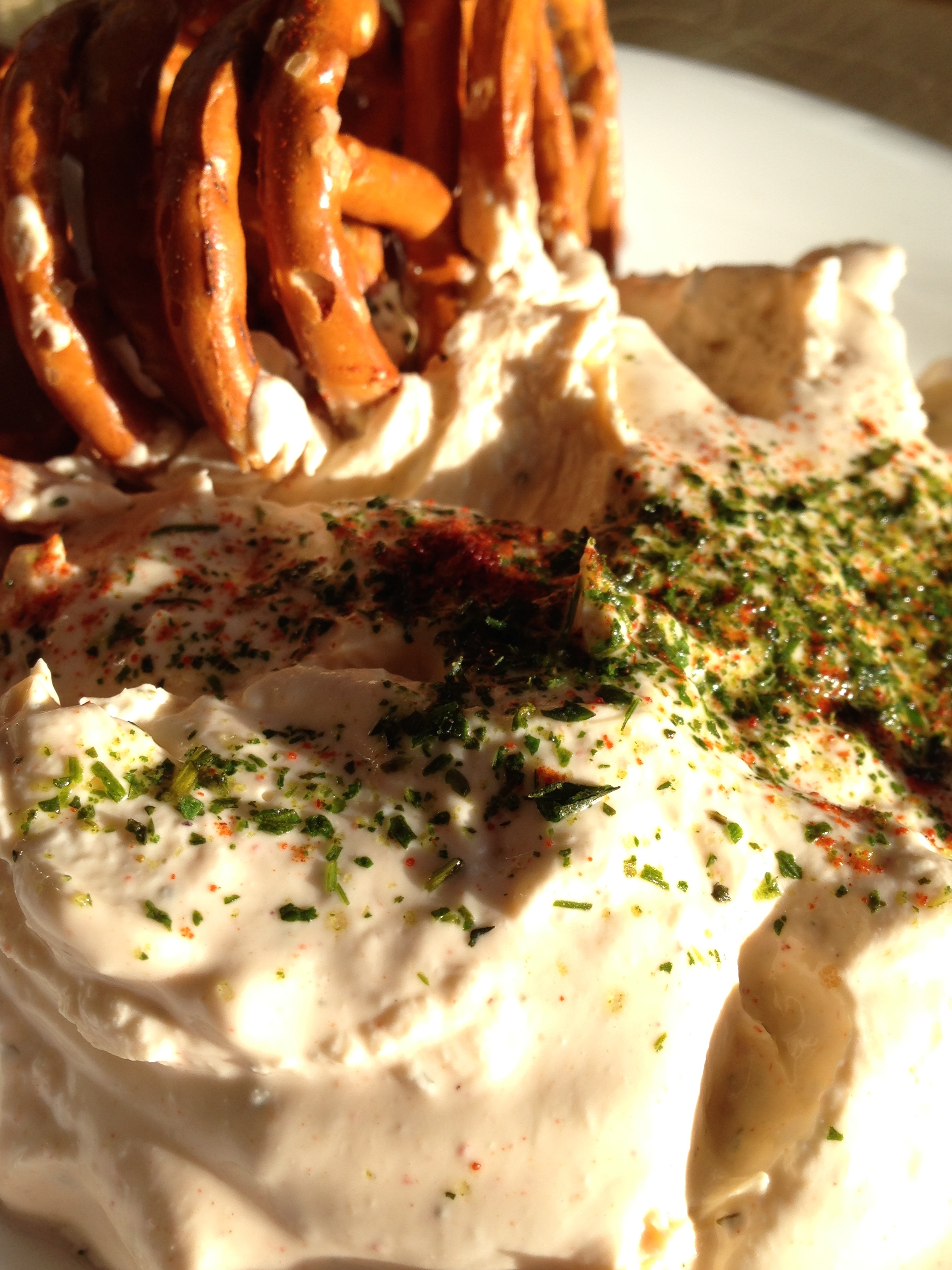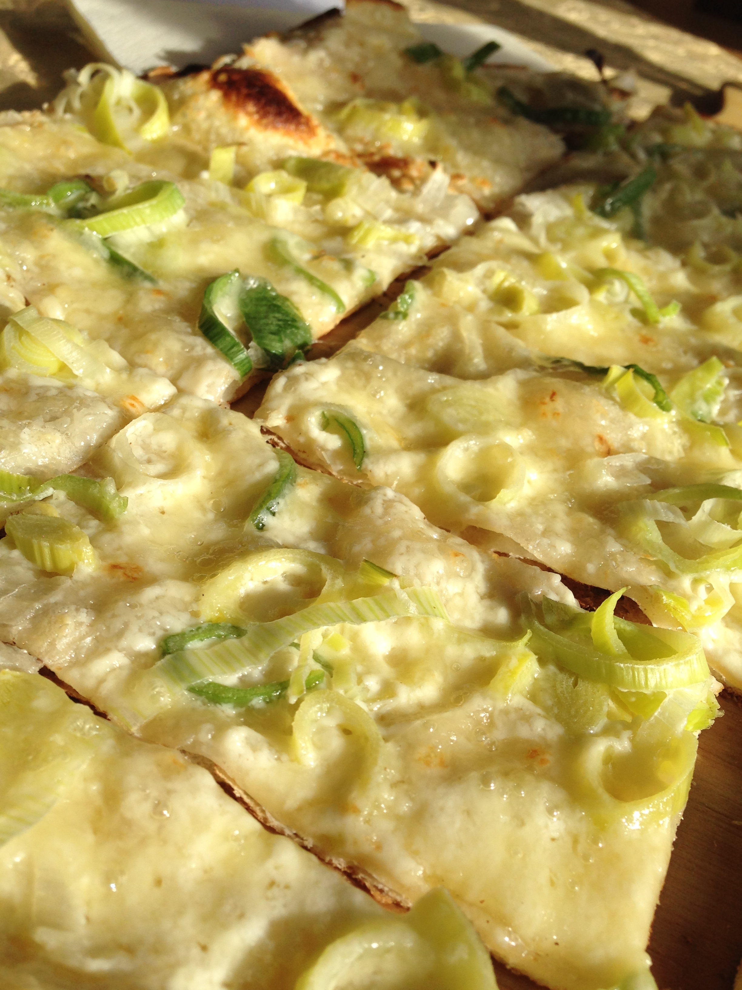 And so you sit there, have a sip of this, a sip of that, compare them, chat about them, then the food turns up (a tarte flambée with cheese and leeks and a ricotta-quark fresh cheese) and he says “Well, I’ll leave you to it – just help yourselves…”
