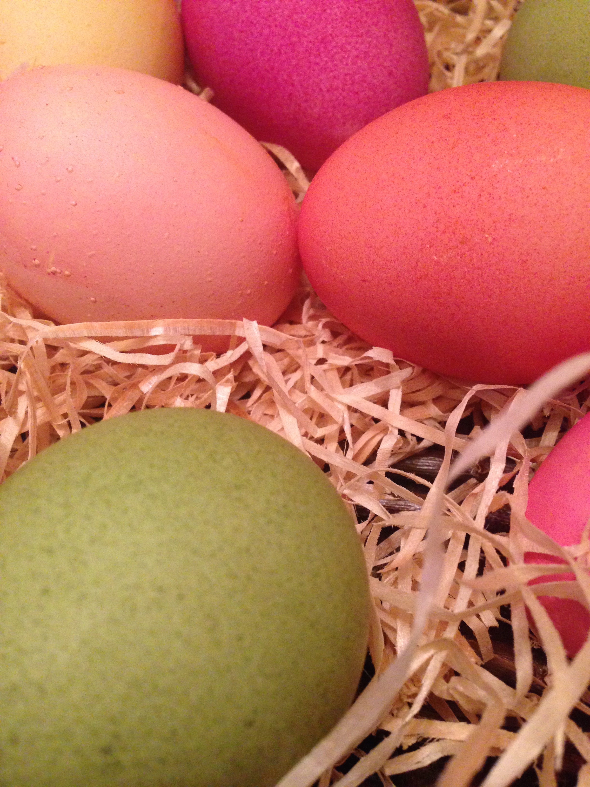 Free range eggs, natural dyes, wood wool from pedigree trees.