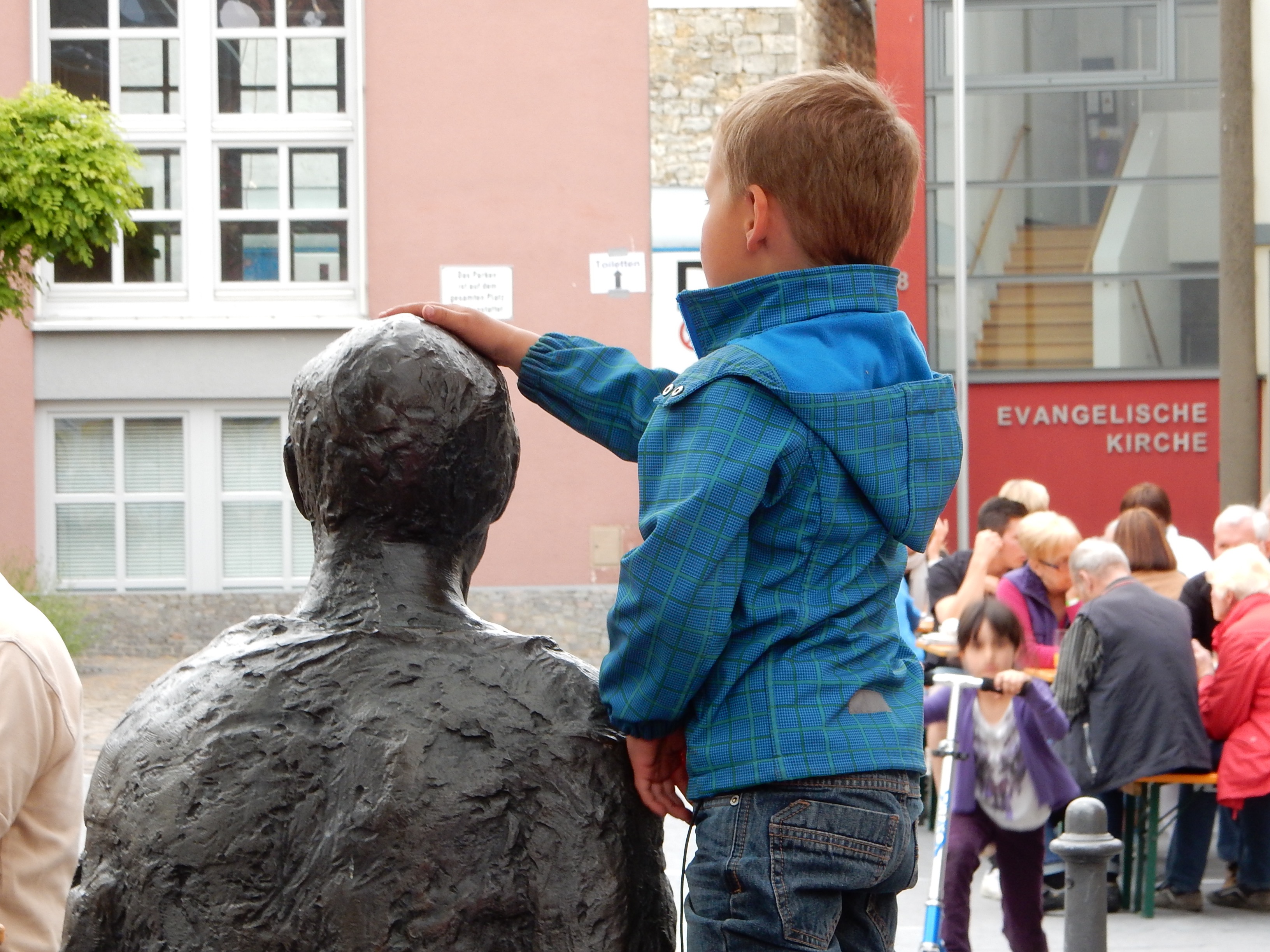Giving the lurv to the statue of St Andreas in the Town Hall Square in Klaawinnerum