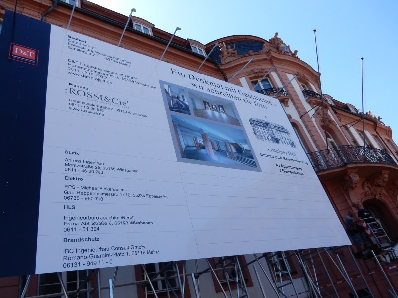 The Osteiner Hof (“Court of Ostein”) is one of several Baroque-era palatial mansions along Schillerplatz square in the German city of Mainz. The mansion, along the southern edge of the square, was built in 1747-1752 by architect-soldier Johann Valentin Thomann for Franz Wolfgang Damian von Ostein, brother of Johann Friedrich Karl von Ostein, who was prince-bishop of Mainz at that time.