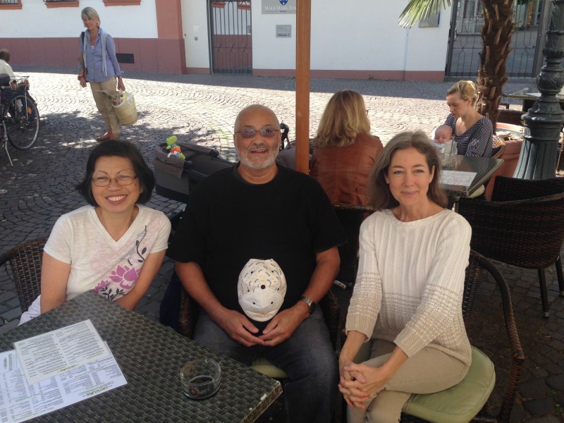 Turns out they were an American Airlines crew with an overnight in Mainz – from left Mollie (“with “ie””) Charlie and Catherine (“with a”C””).