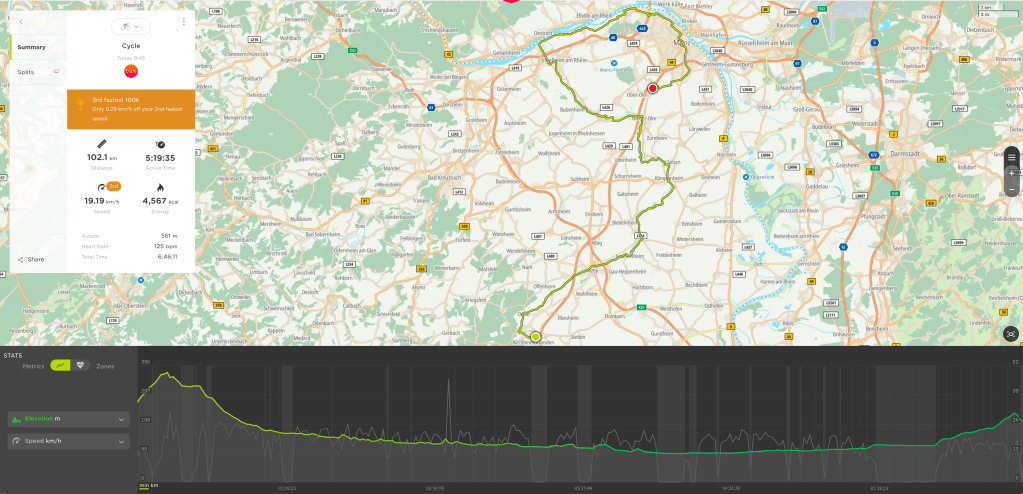 ( overdid it as usual, starting in Kirchheimbolanden, mastering a climb for which the bike could have used crampons and unnecessarily tacking on another 40km for a coffee at Paul‘s in Mainz on the way back up another hill to home.