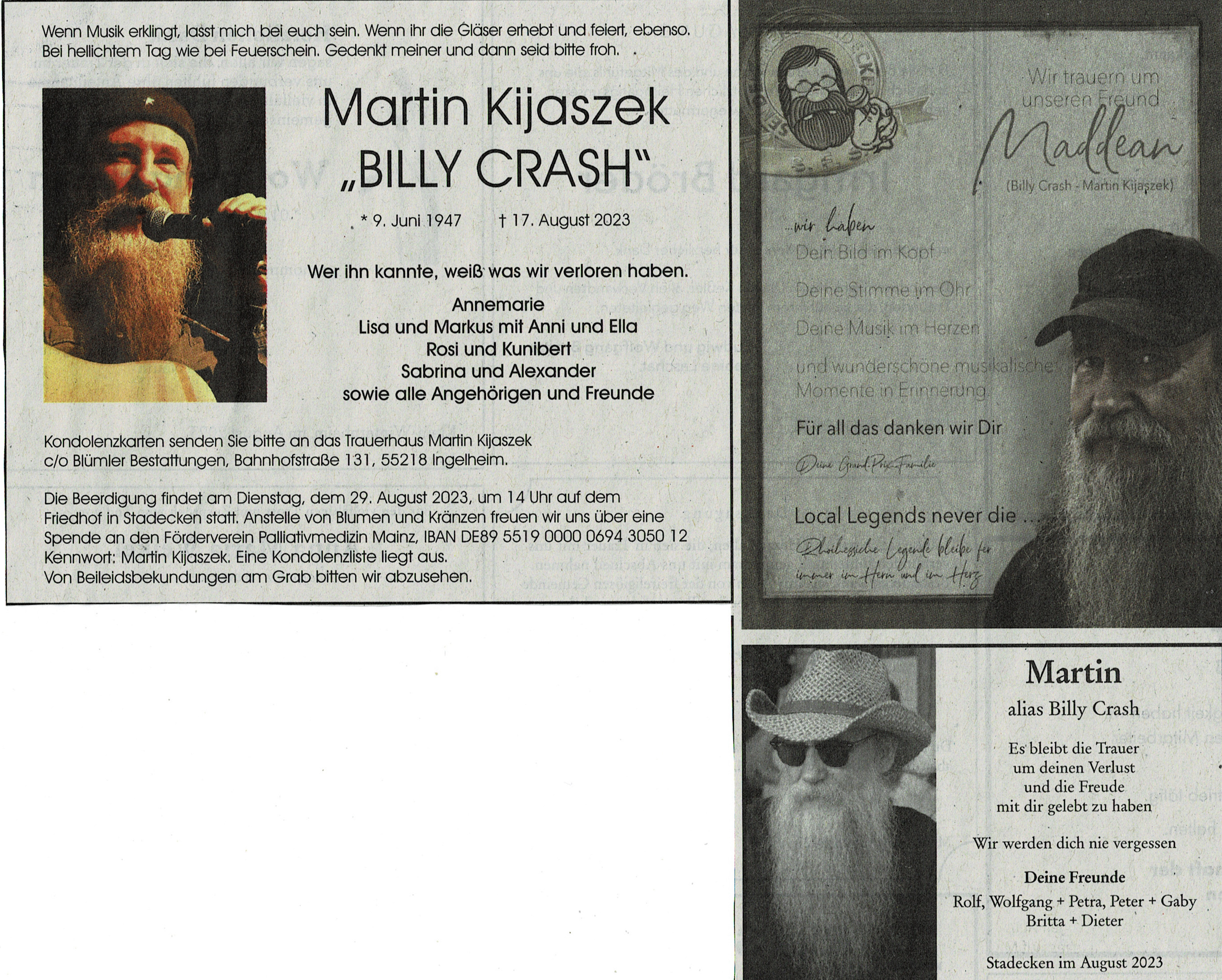 “Those who knew him know what we have lost” wrote Annemarie, Billy Crash’s widow.